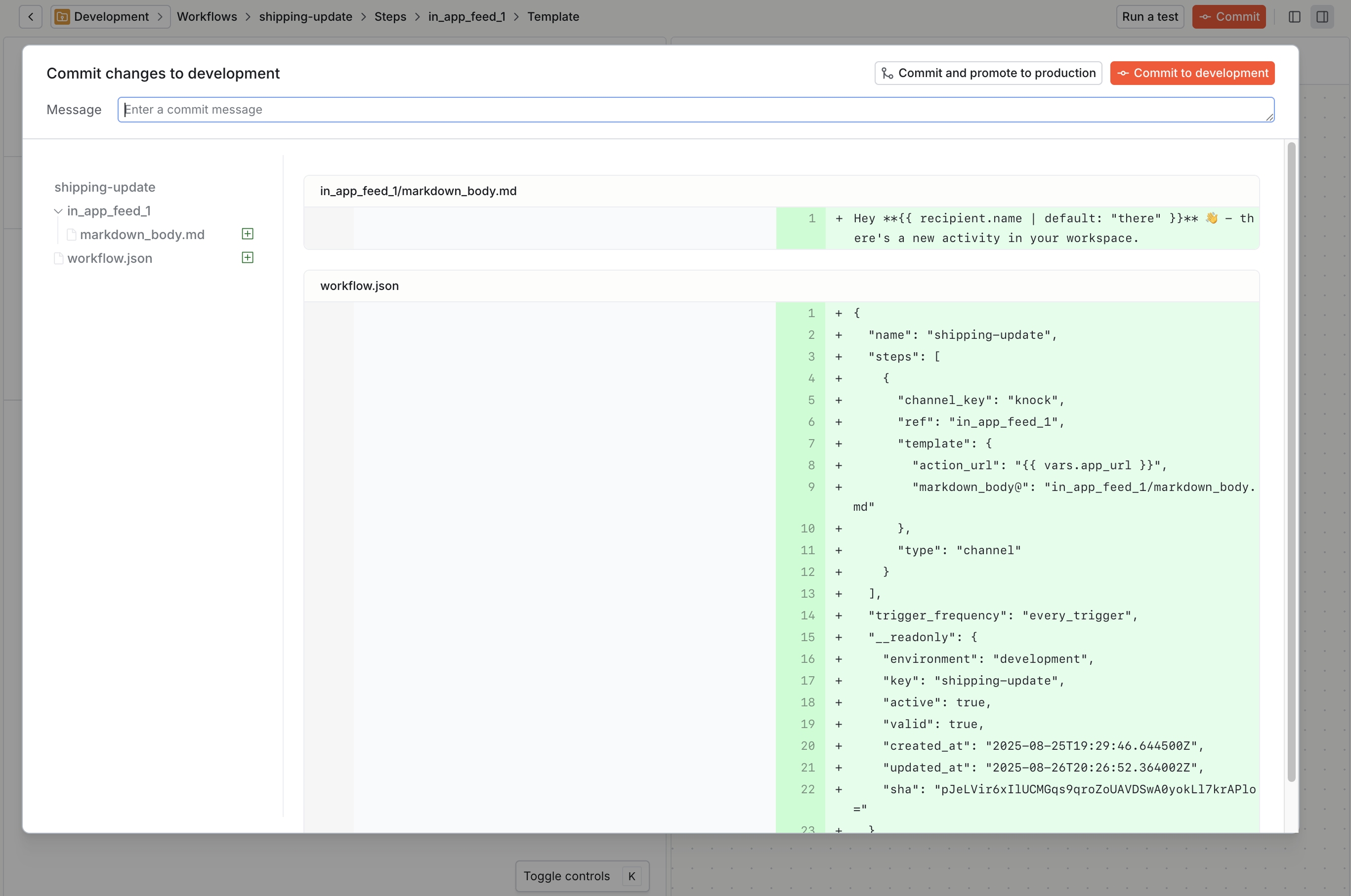 Knock follows a versioning model similar to Git. This means that before you can trigger your new workflow via the API, you'll need to commit it to your current environment to activate the workflow.