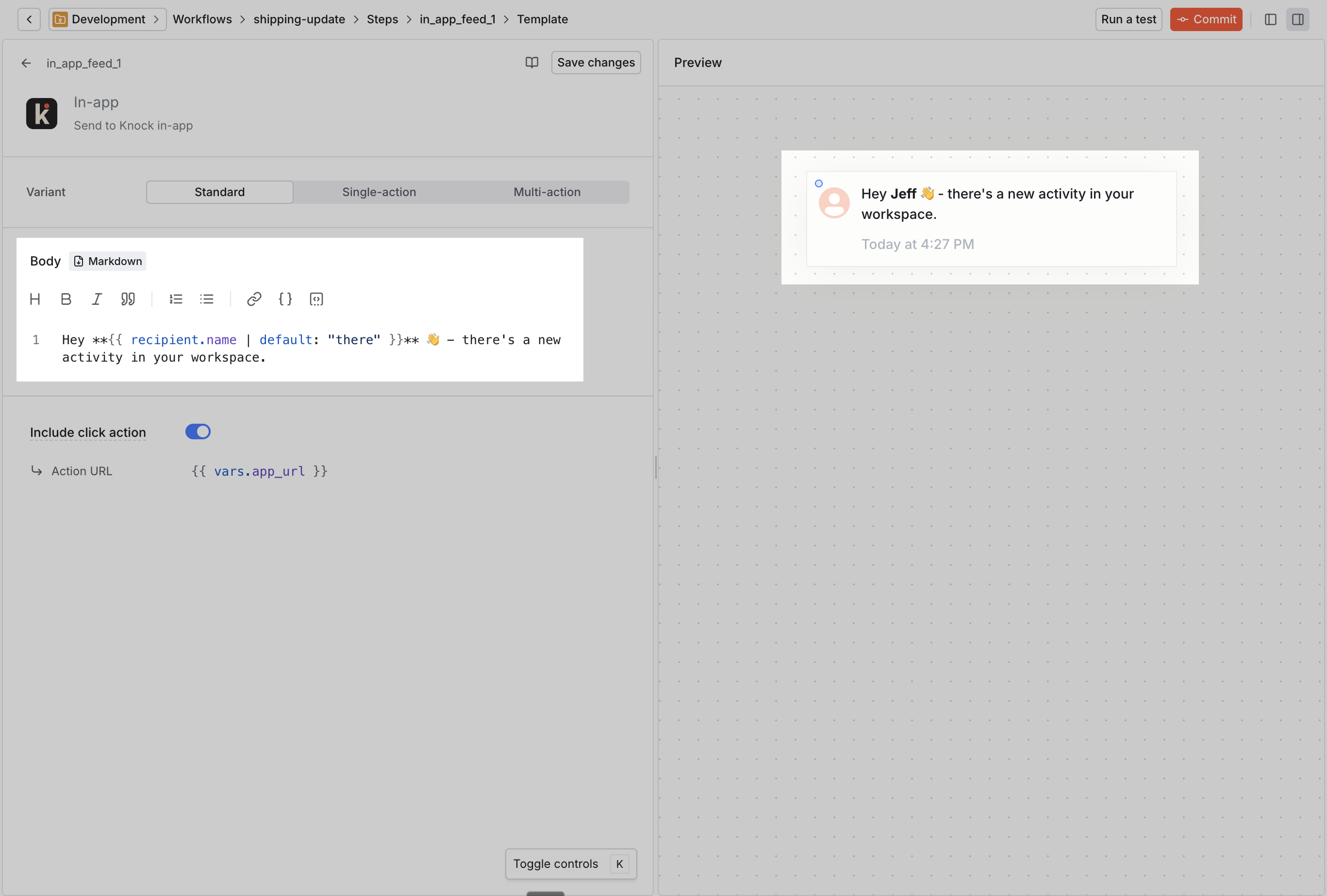 Next we'll design our first workflow in Knock via the dashboard.